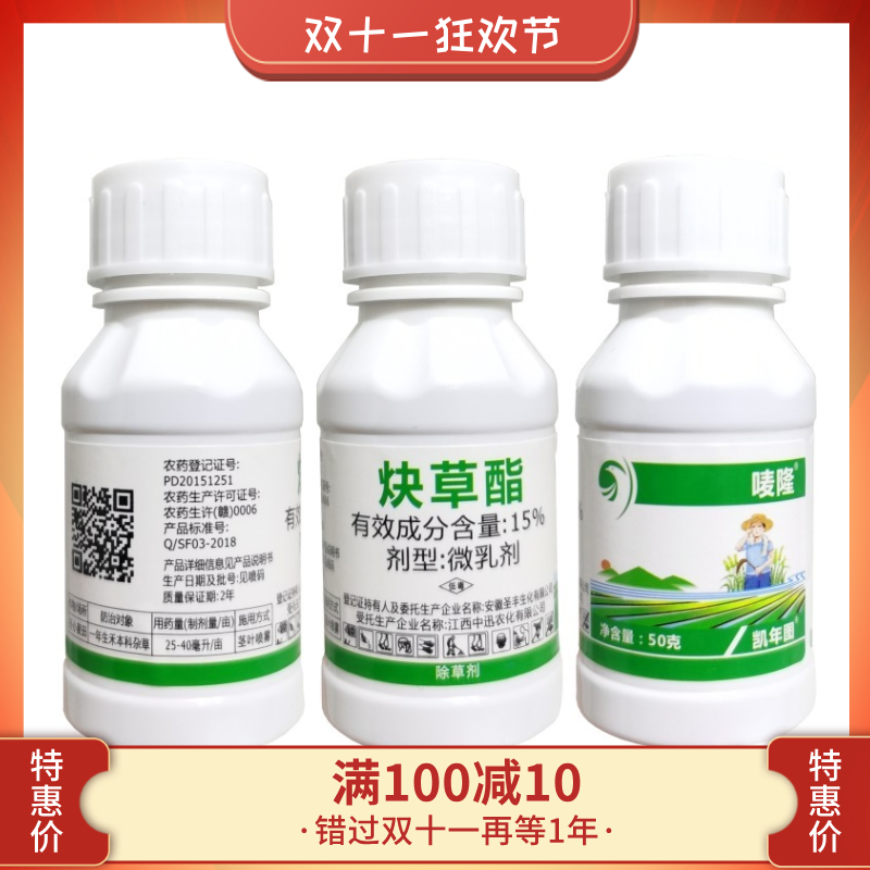 【11·11满减】唛隆15%炔草酯一年生禾本科杂草专用野燕麦看麦娘燕麦黑麦草普通早熟禾狗尾草小麦田除草剂