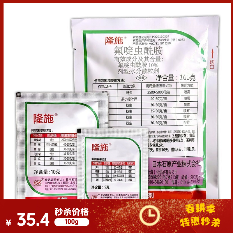 隆施 10%氟啶虫酰胺 西瓜花卉月季黄瓜马铃薯苹果茶树蚜虫桃树桃蚜黄蚜棉蚜杀虫剂