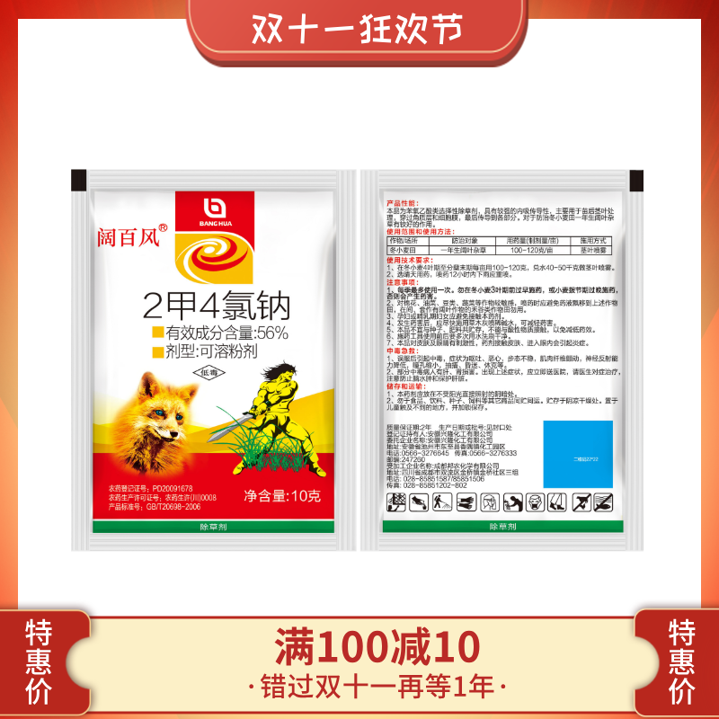 【11·11满减】阔百风 56%2甲4氯钠盐可湿性粉剂 冬小麦一年生杂草 除草剂